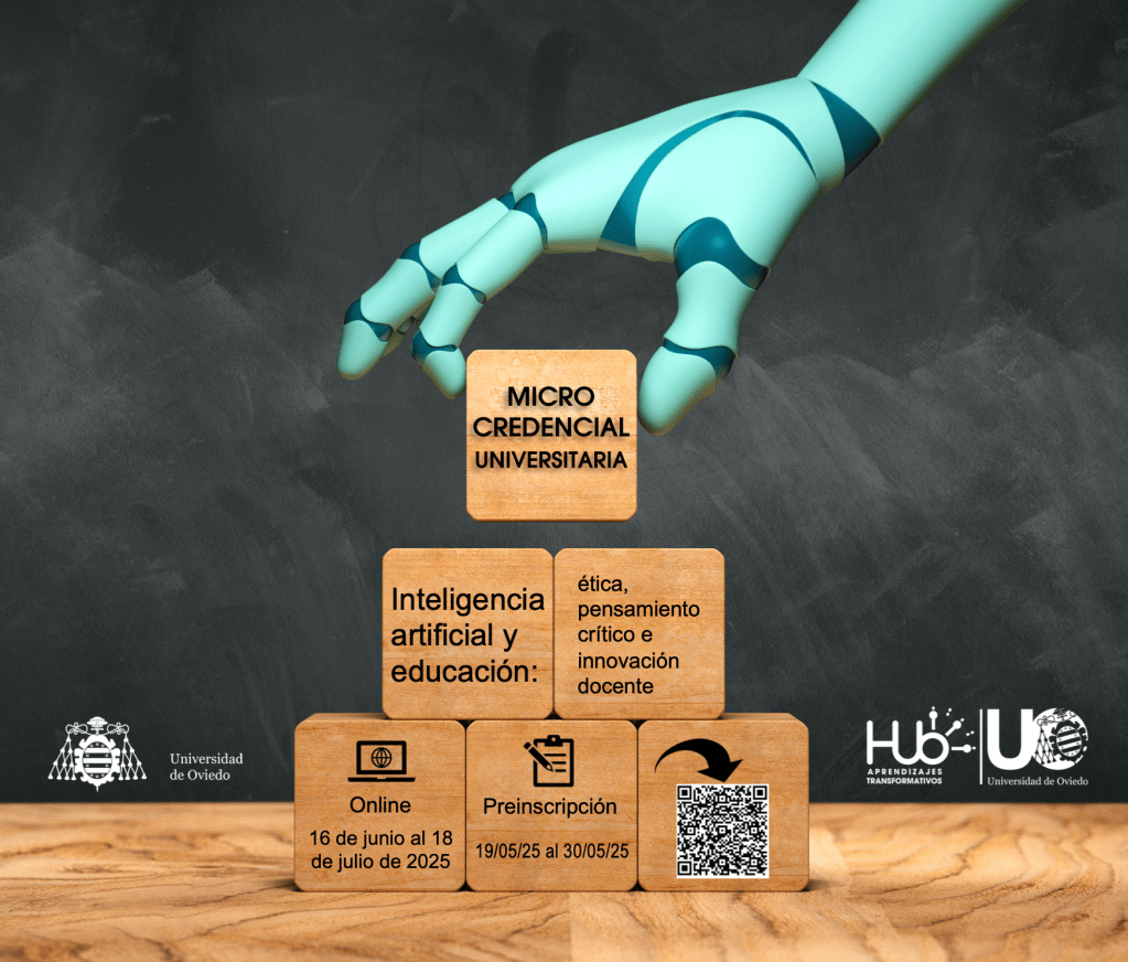 Hoy se abre la inscripción a la Microcredencial Universitaria en Inteligencia Artificial y Educación: ética, pensamiento crítico e innovación docente de la Universidad de Oviedo, que tiene como objetivo ofrecer pautas y herramientas para afrontar los retos y las oportunidades que nos ofrece la IA para la docencia.